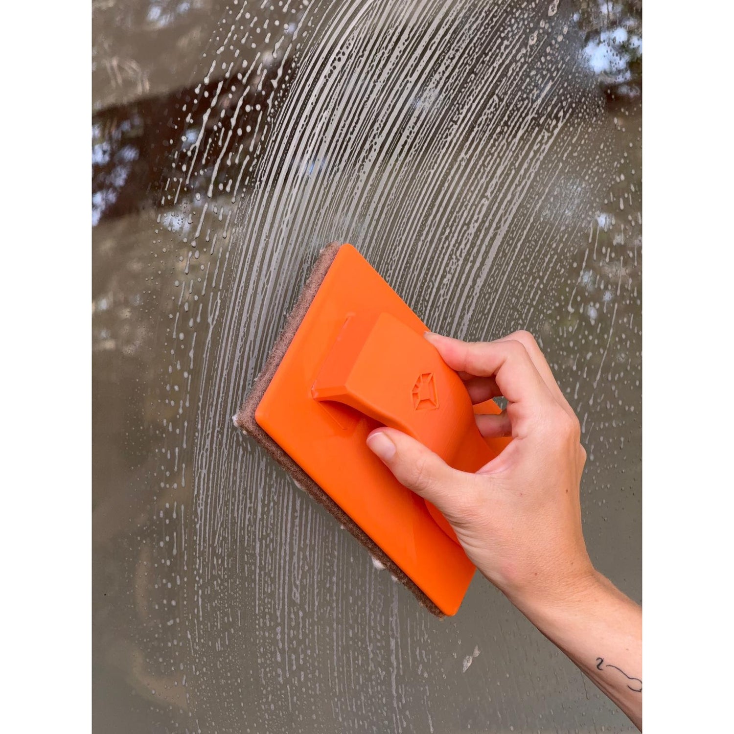 Das Walnusspad sitzt dabei stabil und rutschfest, damit du jederzeit sicheren Druck aufbauen kannst. Die Reinigungsschicht besteht aus zerkleinerten Walnussschalen – eine starke, aber glasfreundliche Oberfläche für empfindliche Glasflächen sowie Rahmen.